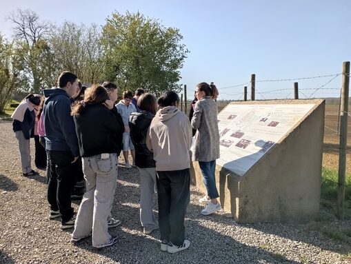 Pour clôturer leur projet pluridisciplinaire (mené en Français, Histoire-Géographie, Anglais, Espagnol et au CDI, avec la professeure documentaliste) consacré au devoir de mémoire, les élèves de 3ème Prépa Métiers se sont rendus à Septfonds à la Mounière, la Maison des mémoires, où une présentation de l’histoire du Camp de Judes leur a été faite. Par la suite, les jeunes se sont rendus sur le site ancien du camp. Ils ont ainsi pu se rendre compte de l’endroit choisi pour la construction de celui-ci et des conditions de vie, grâce à la reconstitution d’une baraque. Enfin, la visite s’est terminée par le cimetière espagnol. Ils ont emprunté l’allée encadrée d’une plantation de pins, ont lu le poème de Rafael Alberti intitulé « Vous n’êtes pas tombés », qui rend hommage aux républicains espagnols morts durant leur exil et se sont rendus auprès des 81 tombes.
