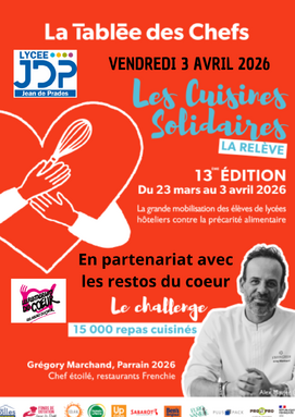 100 repas vont êtres confectionnés par nos élèves de terminales STHR le vendredi 3 avril 2026 pour ensuite être distribués auprès des Restos du Cœur de Castelsarrasin.